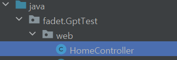 위에서 통신을 위해 코드를 작성했지만 정작 요청을 받는 서버의 /api/hello에 대한 코드가 없습니다. 이러면 아무리 클라이언트가 /api/hello로 api 요청을 해도 서버에서 요청을 받아줄 곳이 없습니다. 따라서 우리는 요청을 받을 수 있게 서버에 컨트롤러를 작성하겠습니다. .../java/fadet/GptTest 하위에 web 패키지를 하나 생성하고 TestAxiosController 클래스를 하나 작성합니다.
