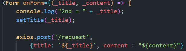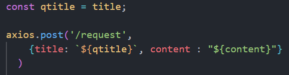 axios.post('/request', {title: "${title}", content : "${content}"})