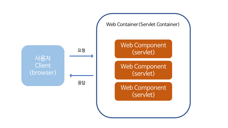 https://fadet-coding.tistory.com/34에서 말했던대로 일반적으로 백엔드에 http 요청이 오면 요청은 정적인 요청과 동적인 요청으로 분리되고 정적인 요청은 Web 서버가, 동적인 요청은 Web 컨테이너가 받는다는 것을 아실겁니다. 여기서 동적인 요청은 Web 컨테이너 내부의 Web Component들이 받으며, 스프링을 사용하면 이 과정이 각각 Web 컨테이너는 서블릿 컨테이너, Web 컴포넌트들은 서블릿에 대응됩니다.