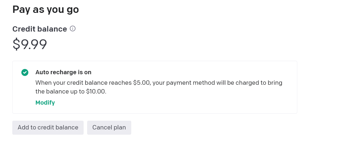 어찌됐든 서비스를 정상화해야하니 무료 api를 제공하는 다른 대화형 인공지능을 찾아볼까하다가 큰 금액이 아니고 한 번 결제해두면 1년 동안 사용한다고해서 그냥 크레딧을 결제했습니다.